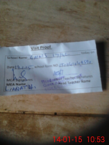 | Attendance Register | Head Teacher | MEA with School | Visit Proof |
