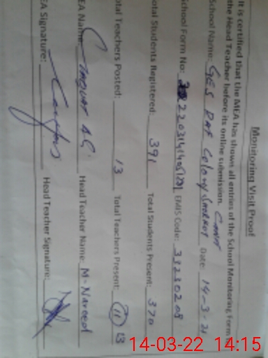 | EMIS Code: 33230208 | Name of School: GES PAF COLONY SHORKOT | |||
