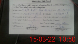 | Monitoring Date: 15-03-2022 | Start Time: 15-03-2022 10:00 AM | End Time: 15-03-2022 10:50 AM | Name of MEA: MU**** HU**** | |