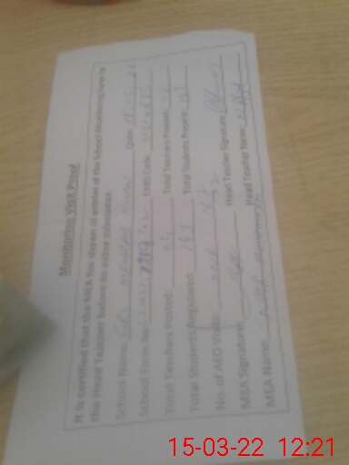 | Name: MAs**** Designation: (School Headmaster's/Headmistress's) PST Phone/Cell Number: 03**** |