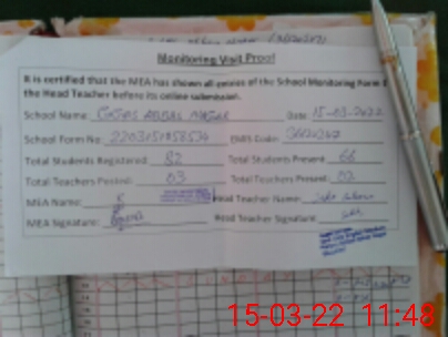 | Attendance Register | Head Teacher | MEA with School | Visit Proof |