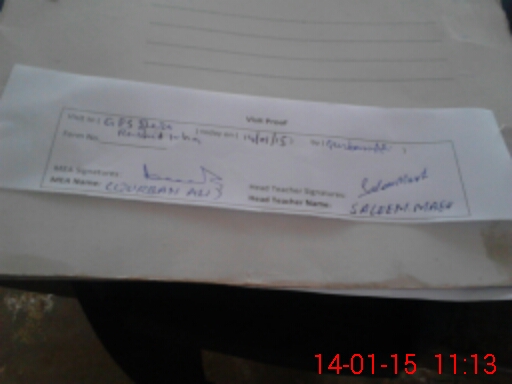 | Attendance Register | Head Teacher | MEA with School | Visit Proof |