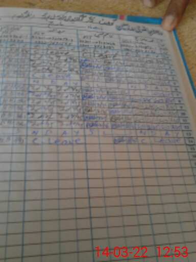 | CNIC | Full Name | Designation | R/C | Absence During Last Calender Month |