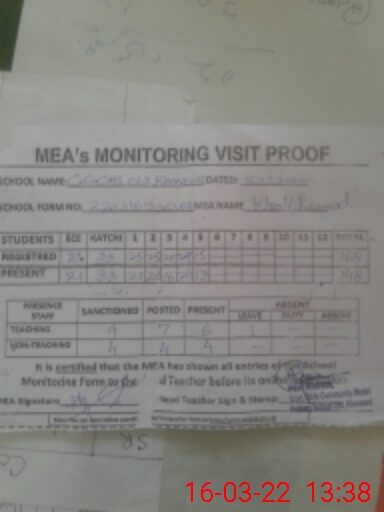 | Attendance Register | Head Teacher | MEA with School | Visit Proof |