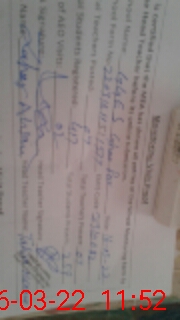 | Name: TA**** NA**** Designation: (School Headmaster's/Headmistress's) S.S.T.(Gen Phone/Cell Number: 03**** |