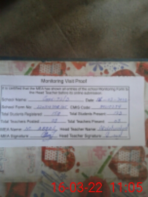 | Attendance Register | Head Teacher | MEA with School | Visit Proof |