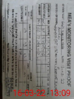 | Monitoring Date: 16-03-2022 | Start Time: 16-03-2022 12:09 PM | End Time: 16-03-2022 01:16 PM | Name of MEA: Sh**** Na**** | |