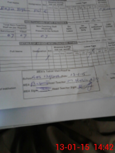 | Attendance Register | Head Teacher | MEA with School | Visit Proof |