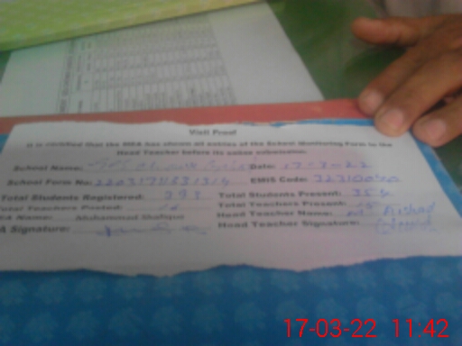 | Name: KA**** UL**** KH**** Designation: (School Headmaster's/Headmistress's) EST ENG Phone/Cell Number: 03**** |