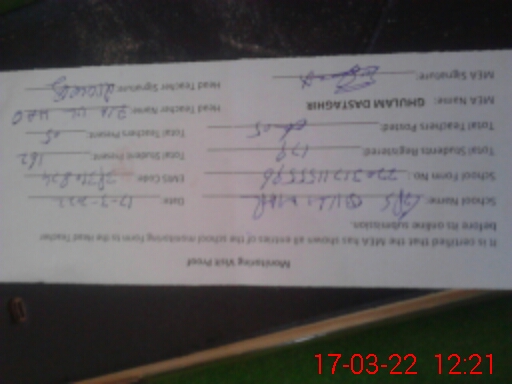 | Certified that this School was Inspected by the Undersigned MEA/DMO Today and the Information Stated Above is as Per Record. | |||||