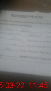 | Attendance Register | Head Teacher | MEA with School | Visit Proof |