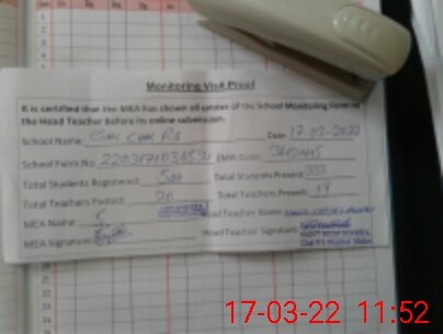 | Attendance Register | Head Teacher | MEA with School | Visit Proof |