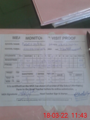 | Certified that this School was Inspected by the Undersigned MEA/DMO Today and the Information Stated Above is as Per Record. | |||||