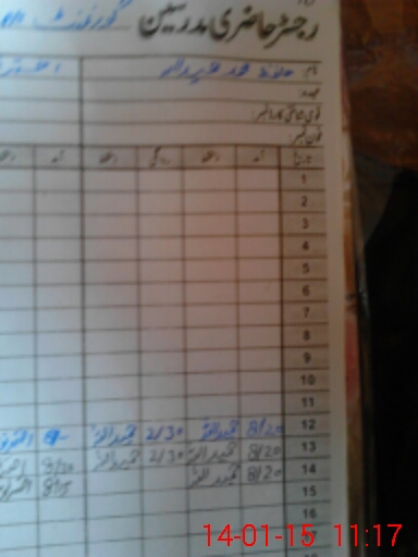 | CNIC | Full Name | Designation | R/C | Absence During Last Calender Month |