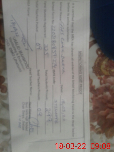 | EMIS Code: 37240098 | Name of School: GGHS CHAK DARYA | |||