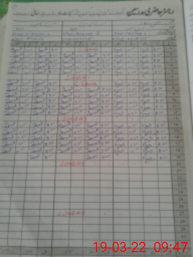 | CNIC | Full Name | Designation | R/C | Absence During Last Calender Month |