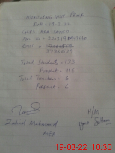 | EMIS Code: 37360539 | Name of School: GGPS ADA SAYYED | |||
