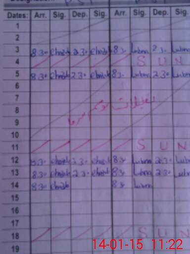 | CNIC | Full Name | Designation | R/C | Absence During Last Calender Month |