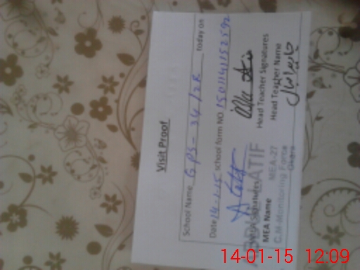 | Attendance Register | Head Teacher | MEA with School | Visit Proof |