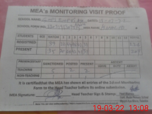 | EMIS Code: 36430400 | Name of School: GMPS BOOPRI AYA KHERA, TULAMBA | |||