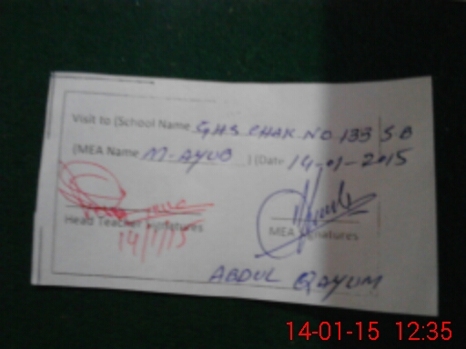 | EMIS Code: 38440021 | Name of School: GHS CHAK NO 133 SB | |||