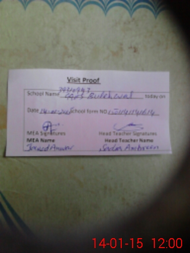 | Attendance Register | Head Teacher | MEA with School | Visit Proof |