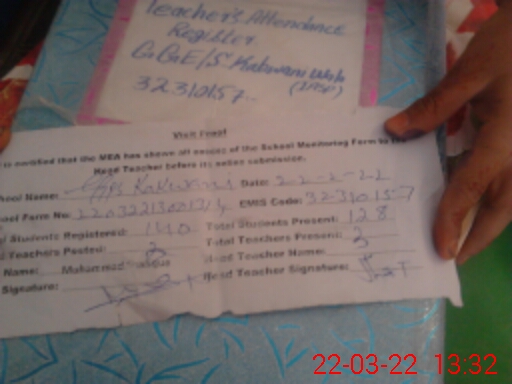 | Name: SH**** TA**** Designation: (School Headmaster's/Headmistress's) PST Phone/Cell Number: 03**** 26**** |