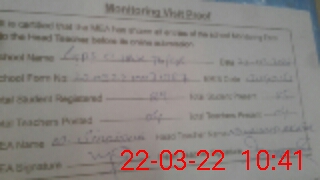 | Attendance Register | Head Teacher | MEA with School | Visit Proof |