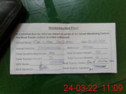 | Attendance Register | Head Teacher | MEA with School | Visit Proof |