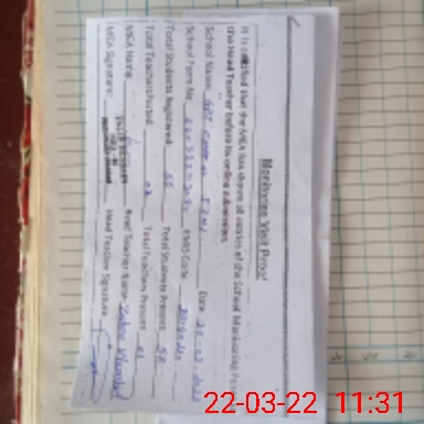 | Attendance Register | Head Teacher | MEA with School | Visit Proof |