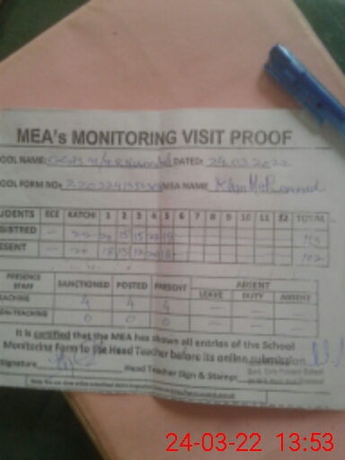 | Certified that this School was Inspected by the Undersigned MEA/DMO Today and the Information Stated Above is as Per Record. | |||||