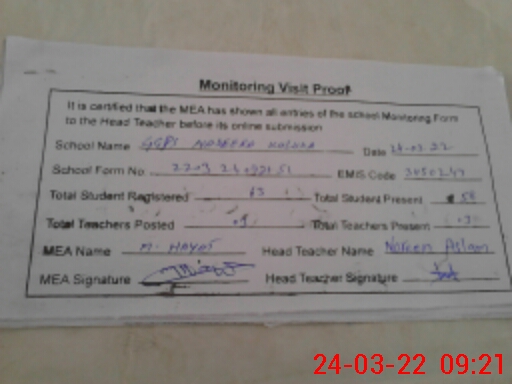 | EMIS Code: 31150247 | Name of School: GGPS NASEERA KALU KA | |||