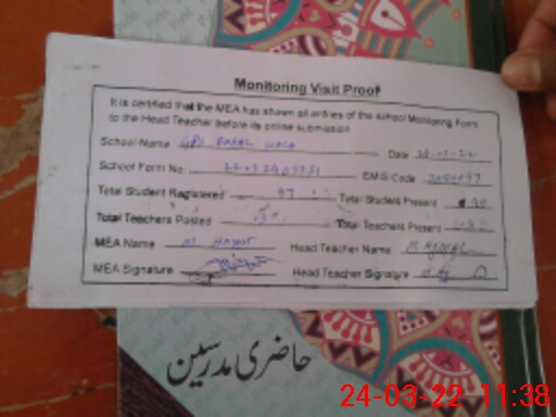 | Attendance Register | Head Teacher | MEA with School | Visit Proof |