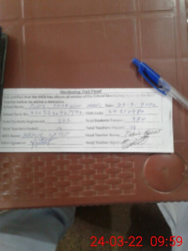 | Certified that this School was Inspected by the Undersigned MEA/DMO Today and the Information Stated Above is as Per Record. | |||||