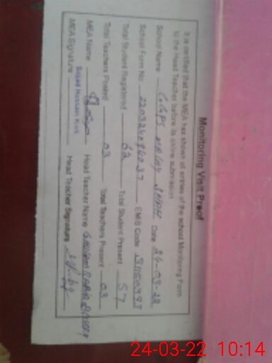 | Certified that this School was Inspected by the Undersigned MEA/DMO Today and the Information Stated Above is as Per Record. | |||||
