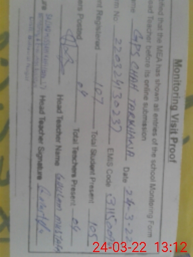 | EMIS Code: 31150094 | Name of School: GPS CHAH TARKHANA WALA | |||
