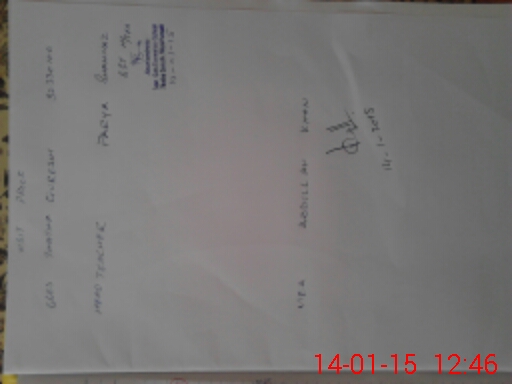| Monitoring Date: 14-01-2015 | Start Time: 14-01-2015 12:20 PM | End Time: 14-01-2015 12:59 PM | Name of MEA: Ab**** Kh**** | |