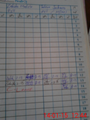 | CNIC | Full Name | Designation | R/C | Absence During Last Calender Month |
