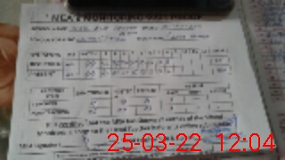 | Monitoring Date: 25-03-2022 | Start Time: 25-03-2022 11:10 AM | End Time: 25-03-2022 12:05 PM | Name of MEA: Sa**** Ah**** | |