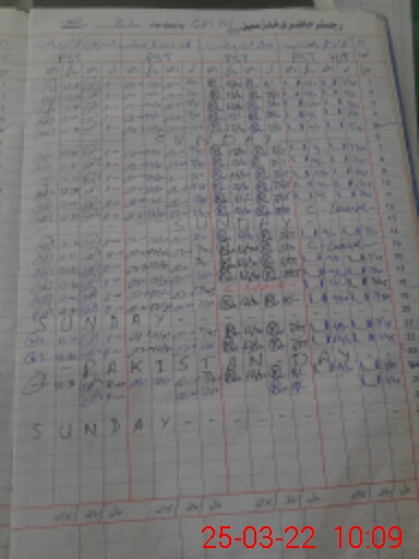 | CNIC | Full Name | Designation | R/C | Absence During Last Calender Month |