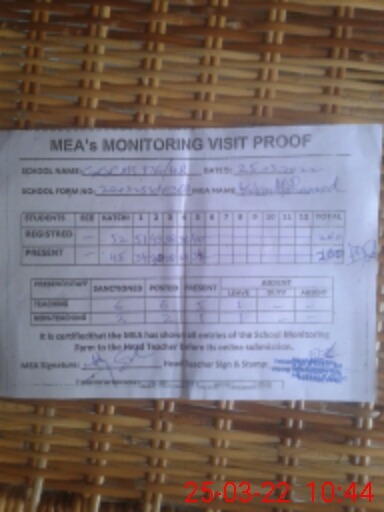 | Certified that this School was Inspected by the Undersigned MEA/DMO Today and the Information Stated Above is as Per Record. | |||||