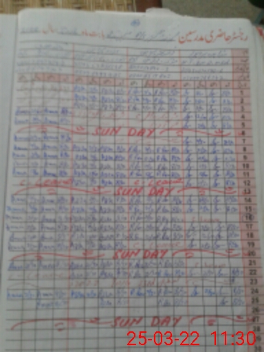 | CNIC | Full Name | Designation | R/C | Absence During Last Calender Month |
