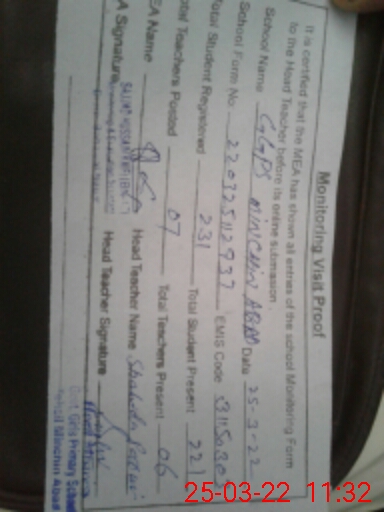 | Attendance Register | Head Teacher | MEA with School | Visit Proof |