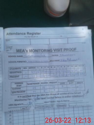 | Attendance Register | Head Teacher | MEA with School | Visit Proof |