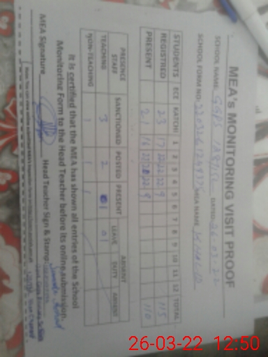 | Monitoring Date: 26-03-2022 | Start Time: 26-03-2022 11:23 AM | End Time: 26-03-2022 12:52 PM | Name of MEA: Kh**** Me**** | |