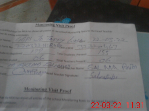 | Attendance Register | Head Teacher | MEA with School | Visit Proof |
