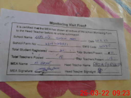 | Certified that this School was Inspected by the Undersigned MEA/DMO Today and the Information Stated Above is as Per Record. | |||||