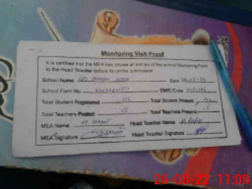 | Certified that this School was Inspected by the Undersigned MEA/DMO Today and the Information Stated Above is as Per Record. | |||||
