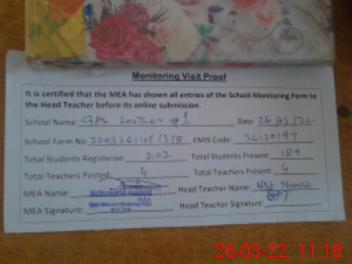 | EMIS Code: 36130197 | Name of School: GPS LOOTHER NO. 1 | |||