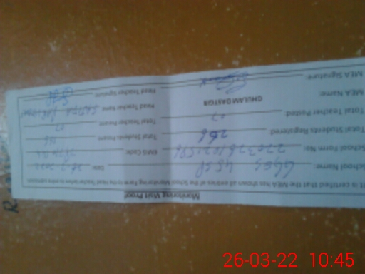 | Name: Sa**** Pe**** Designation: (School Headmaster's/Headmistress's) SST Sci Phone/Cell Number: 03**** |